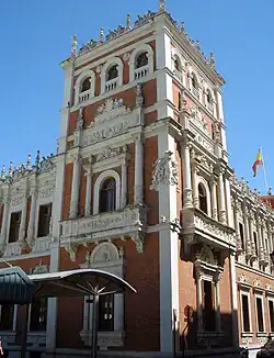 En cuanto a arquitectura civil y espacios públicos representativos, destaca sin duda la calle Mayor, eje comercial y social donde se ubican la mayor parte de los edificios administrativos, comerciales y culturales de la ciudad. En esta calle, que presenta soportales en uno de los lados, se encuentran las edificaciones más singulares de la ciudad, en estilo neoplateresco y modernista, en las que el ladrillo, la piedra, el hierro y la madera son los materiales más característicos.[1]