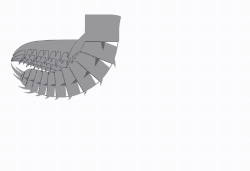 Las aletas ventrales pueden ser homólogas al endopodito de las extremidades birrámeas de los euartrópodos y a las extremidades lobópodas de los lobópodos con branquias, y las aletas dorsales y las láminas setales pueden ser homólogas a las aletas dorsales exíticas y con branquias de los anteriores taxones.[10][29] El tronco puede terminar con un abanico de cola compuesto de 1 a 3 pares de láminas,[3][25][27] un par de cercos largos,[27][12][3] una estructura terminal alargada,[25] o una punta roma sin rasgos.[10]