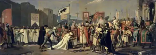 ![]() La reconquista de Córdoba por Fernando III el Santo, obra de 1712 por Antonio Palomino, en la capilla de Santa Teresa de la Mezquita-Catedral de Córdoba | ||||