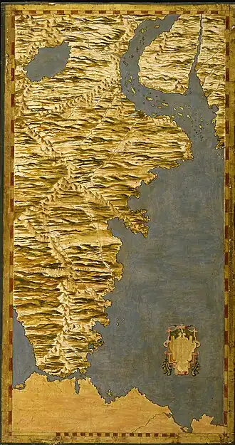 ![]() El sur de América del Sur, en un mapa publicado circa 1570 por el italiano Egnazio Danti.