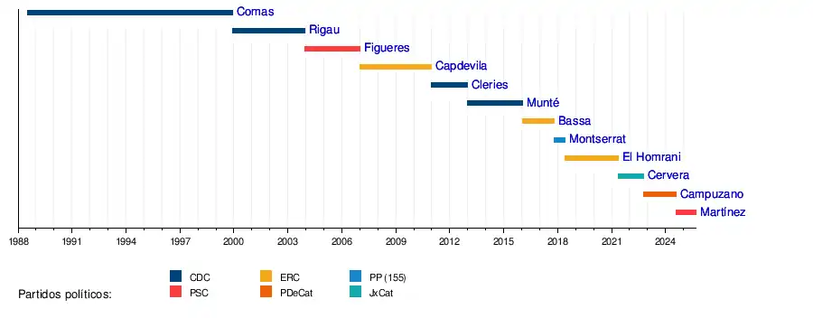 Antoni Comas i Baldellou | CDC | 4 de julio de 1988 | 29 de noviembre de 1999 | Pujol III | |||