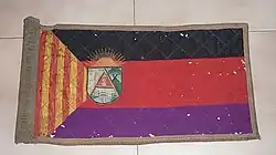 En la actualidad las únicas banderas que se conocen de ese periodo son unos banderines que se encuentran en manos de un coleccionista privado de Vilasar de Dalt (Barcelona). Una de ellas es lo que parece ser un banderín de coche oficial. En el banderín se puede observar la inscripción: “Cojida en Caspe, 17-3-38, año de la liberación”, este tipo de inscripciones las hacía el bando nacional como botín de guerra cuando tomaba alguna población del bando republicano.