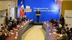 Promulgación de la ley que establece las elecciones de los consejeros regionales.