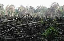 La destrucción del hábitat reduce la cantidad de lugares en los que puede vivir la vida silvestre. La fragmentación del hábitat rompe un tramo continuo de hábitat, a menudo dividiendo grandes poblaciones de vida silvestre en varias más pequeñas.[3] La pérdida y fragmentación del hábitat causada por el hombre son los principales impulsores de la disminución y extinción de especies. Los ejemplos clave de la pérdida de hábitat inducida por el hombre incluyen la deforestación, la expansión agrícola y la urbanización. La destrucción y fragmentación del hábitat puede aumentar la vulnerabilidad de las poblaciones de vida silvestre al reducir el espacio y los recursos disponibles para ellos y al aumentar la probabilidad de conflictos con los humanos. Además, la destrucción y la fragmentación crean hábitats más pequeños. Los hábitats más pequeños sostienen poblaciones más pequeñas, y es más probable que las poblaciones más pequeñas se extingan.[4]