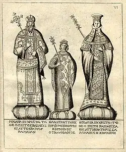 - ↑ a b c Trapp, Erich; Beyer, Hans-Veit; Kaplaneres, Sokrates; Leontiadis, Ioannis (1989), «21492. Παλαιολόγος Κωνσταντῖνος», Prosopographisches Lexikon der Palaiologenzeit (en alemán) (Vienna: Verlag der Österreichischen Akademie der Wissenschaften) 9.