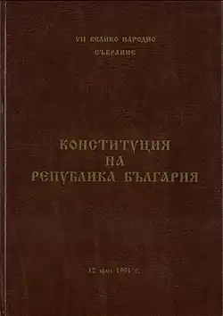 La Constitución de Bulgaria (en búlgaro: Конституция на Република България, Konstitutsia na Repúblika Balgaria) es la ley suprema y fundamental de la República de Bulgaria. La actual Constitución se aprobó el 12 de julio de 1991 por la séptima Asamblea Nacional de Bulgaria, y define al país como una república parlamentaria unitaria. Desde su aprobación en 1991, se ha modificado en cuatro ocasiones (2003, 2005, 2006 y 2007) y es cronológicamente la cuarta constitución de la historia de Bulgaria.