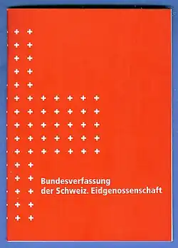 La Constitución federal de la Confederación Suiza (en alemán: Bundesverfassung der Schweizerischen Eidgenossenschaft; en francés: Constitution fédérale de la Confédération suisse; en italiano: Costituzione federale della Confederazione Svizzera; en romanche: Constituziun federala da la Confederaziun Svizra) es la tercera y actual carta fundamental de Suiza adoptada vía voto popular del 18 de abril de 1999 y vigente desde el 1 de enero de 2000. Vino a reemplazar a la antigua Constitución de 1874, que ya había sido actualizada sin mayores reformas sustanciales.[1]
