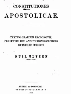 Constituciones apostólicas es el nombre de una obra cristiana del siglo IV supuestamente redactada por los apóstoles[1] y transmitida a través de Clemente de Roma. Está compuesta de ocho libros de propósito diverso, entre los que se encuentran la Didascalia apostolorum (los primeros seis libros) y la Didaché.
