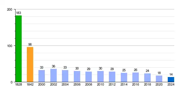 | Gráfica de evolución demográfica de Consuegra de Murera[11] entre 1828 y 2024 |