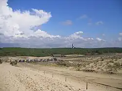 La amplia playa de arena fina es popular entre bañistas, nadadores y surfistas. Un punto de referencia local es el faro de Contis, construcción de 38 m de altura y 192 escalones con una característico diseño. Pintado de blanco, con una franja oscura en espiral, se le conoce popularmente como el azucarero. Es el único faro desde las costas de Capbreton hasta las de Cap Ferret.