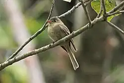 - ↑ Tello, J.G., Moyle, R.G., Marchese, D.J. & Cracraft, J. (2009). «Phylogeny and phylogenetic classification of the tyrant flycatchers, cotingas, manakins, and their allies (Aves: Tyrannides).». Cladistics (25): 1-39. ISSN 0748-3007. doi:10.1111/j.1096-0031.2009.00254.x.
