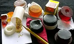 Los músicos de cuerda aplican colofonia al pelo del arco para que "agarre" la cuerda y la haga vibrar. La colofonia del contrabajo es generalmente más suave y pegajosa que la del violín para permitir que el pelo se agarre mejor a las cuerdas más gruesas, pero los músicos utilizan una gran variedad de colofonias que varían desde las más duras (como la colofonia del violín) hasta las más suaves, dependiendo del clima, la humedad y las preferencias del músico. La cantidad utilizada depende generalmente del tipo de música que se interpreta, así como de las preferencias personales del músico. Los bajistas pueden aplicar más colofonia en las obras para grandes orquestas (por ejemplo, las sinfonías de Brahms) que en las delicadas obras de cámara. Algunas marcas de colofonia, como la colofonia para contrabajo Wiedoeft o Pop, son más blandas y más propensas a derretirse cuando hace calor. Otras marcas, como la colofonia para contrabajo Carlsson o Nyman Harts, son más duras y menos propensas a fundirse.