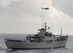 Durante la transformación para su empleo como transporte auxiliar, sufrió un incendio que pudo ser sofocado. Entre otras obras, destaca la instalación de una cubierta de vuelo a popa, con capacidad para operar un helicóptero medio del tipo Agusta-Bell AB 212. Dispone de dos grúas con una capacidad de carga de 5 toneladas cada una de ellas, así como de bodegas de carga para una capacidad total de carga de 2743 t y cámaras frigoríficas.