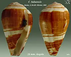 El Conus babaensis es una especie de caracol de mar, un molusco gasterópodo marino en la familia Conidae, los caracoles cono y sus aliados.[1]