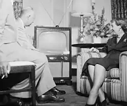 Después de la nominación de Eisenhower, sus partidarios clave se reunieron para discutir las posibilidades de vicepresidente.[15][16] Eisenhower informó al presidente del grupo, Herbert Brownell Jr., que no deseaba aparecer para dictar la convención patrocinando formalmente a un solo candidato, por lo que el grupo revisó a varios, incluidos Taft, Everett Dirksen y Alfred E. Driscoll, todos los cuales rechazaron rápidamente.[15][16] Dewey luego elevó el nombre de Nixon; el grupo rápidamente estuvo de acuerdo.[15][17] Brownell consultó con Eisenhower, quien indicó su aprobación.[18][19] Brownell luego llamó a Nixon para informarle que él era la elección de Eisenhower.[18][19] Nixon aceptó, luego se fue a la habitación de hotel de Eisenhower para discutir los detalles de la campaña y los planes de Eisenhower para su vicepresidente si el boleto tenía éxito en las elecciones generales.[18][19]