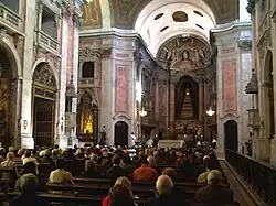 En su reconstrucción después del terremoto de 1755 se optó por un interior sobrio, con capillas doradas rococós de finales del siglo XVIII.
