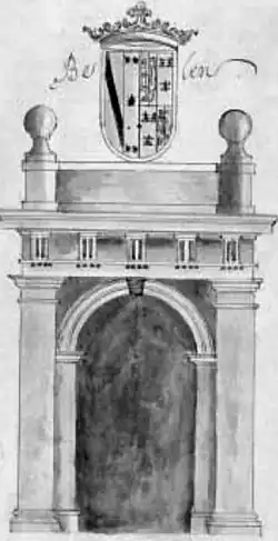 El segundo convento contaba con una elegante portada de estilo clásico, coronado por el escudo de sus patronos, Francisco Gómez de Sandoval, I duque de Lerma; y su esposa, Catalina de la Cerda.