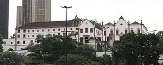 Ese frontón de estilo neocolonial fue introducido durante una reforma de la década de 1920, y recientemente fue deshecho para la recuperación del frontón triangular original, de tipo manieirista – como de hecho eran los frontones de los templos más antiguos de la ciudad, como los de las iglesias de Santo Ignacio (demolida) y del Monasterio de San Benito. En 1649, fue concluido el muro que cercaba el convento.