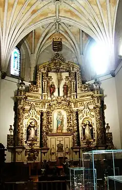 El mobiliario artístico-religioso incluye un cuadro de una procesión de la virgen del Rosario en la Vitoria del siglo XVI, un relicario que contiene dos partículas del Lignum Crucis realizado en el primer tercio del siglo XVIII, tallas de la escuela del escultor sevillano Juan Martínez Montañés y de los artistas Alfonso Giraldo Bergaz y Alonso del Arco correspondientes a los siglos XVII y XVIII, otras obras de los artistas locales Valdivielso y Ullibarri, un Niño Jesús pasionario representando a Santa Catalina, una colección de cantorales y dos vírgenes de Malinas.