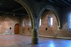 Una sala de dos partes al lado de las escaleras servía como refectorio y escritorio, pero se podía utilizar como una habitación entera. Esta sala está dividida en dos partes por dos arcos transversales que están apoyados por una columna central. Ambas partes son accesibles con su propio portal en el muro occidental.