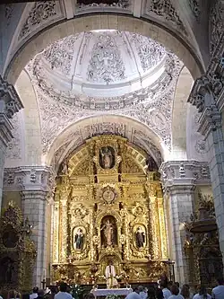 En cuanto a la decoración mueble, destaca el conjunto de retablos barrocos, del siglo XVIII, en los que se muestra una abigarrada decoración que compite con la de las yeserías de las cubiertas. El retablo mayor, presidido por la imagen de la Virgen de la Expectación y san Agustín en el ático, muestra el despliegue decorativo propio del Barroco churrigueresco de esas centurias. Es destacable asimismo un gran cuadro representando a san Pío V, presente aquí sin duda por su relación con el fundador del convento.