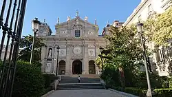 La escalinata que accede a la portada del templo fue realizada en 1930 por Miguel Durán al abrir la nueva calle Bárbara de Braganza.