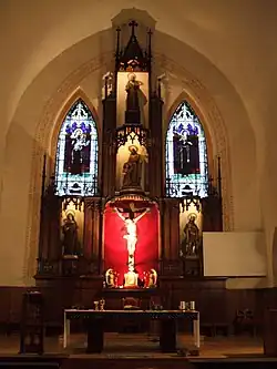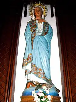 La iglesia del Convento fue finalizada y consagrada en 1913. Se trata de un templo de reducidas dimensiones y muy austera fábrica, con única planta de tramo corto, cabecera recta, tejado de dos aguas y una fachada irregular en la que se proyecta, en la parte inferior, un vestíbulo de acceso en forma de punta de diamante, el cual sostiene un sencillo balcón sin acceso; la fachada se remata en su parte superior con una discreta espadaña. Se trata de un edificio funcional y sin apenas elementos decorativos, aunque por sus vanos de arco apuntado y los pináculos que rematan el frontispicio podría hablarse de un vago estilo neogótico. El mobiliario que contiene la iglesia consiste en tallas religiosas de factura moderna.