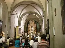 La iglesia se presenta en una sola nave, cubierta en ocasiones por bóvedas de crucería, que termina en un coro poligonal ampliado durante las remodelaciones de Médici. Hay que imaginar, en el Quattrocento, a raíz de las intervenciones de Cosimo y del hijo Piero, una decoración muy diferente a la actual, y sin duda más rica.