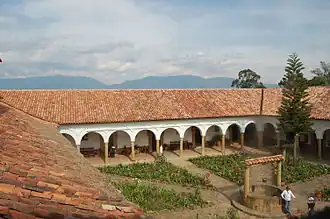 El monasterio construido en una ladera, siguiendo el patrón español común de la época! consta principalmente de un claustro, una iglesia y de un cementerio, edificios que flanquean el costado oriental de una plaza. La Iglesia y el cementerio, son considerados como un ejemplo del arte mudéjar en la Nueva Granada. El claustro formado por cuatro galerías que abarcan el cuadrilátero del patio tiene como elemento regulador el renacentista expresado mediante el orden toscano evidente en el tipo de las columnas de la arquería.[2]