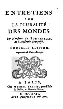 - ↑ Conversaciones acerca de la pluralidad de los mundos, por Bernard le Bovier de Fontenelle. Traducido por H. A. Hargreaves, editado por Nina Rattner. Gelbart. Berkeley: University of California Press. 1990.
