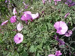 Mediterráneo, en el Mediterráneo oriental aparece con mayor frecuencia Convolvulus althaeoides subsp. tenuissimus.