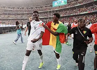 ![]() La celebración de Guinea tras su victoria en octavos de final frente a Guinea Ecuatorial. | |||||