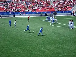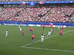Tiro libre de Nueva Zelanda en su partido ante Portugal, durante la primera fase del torneo.