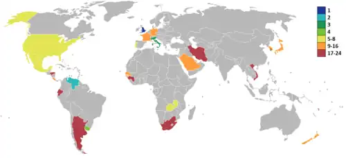 Bandera de Nueva Zelanda Nueva Zelanda 2015 Corea del Sur 2017 Bandera de Polonia Polonia 2019