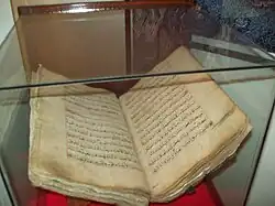 Durante la vida del profeta Mahoma, las revelaciones eran transmitidas oralmente o escritas en hojas de palmeras, trozos de cuero o huesos, etc.[2]​ A la muerte del profeta, en 632, sus seguidores comenzaron a reunir estas revelaciones, que durante el Califato de Uthmán ibn Affán (عثمان بن عفان) tomaron la forma que hoy conocemos, 114 capítulos (azoras, سورة), cada uno dividido en aleyas (آية).[3]
