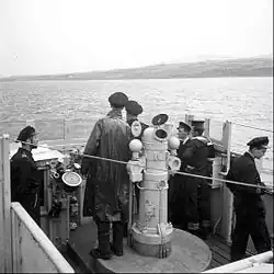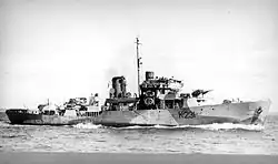 - ↑ El prefijo HMCS significa Her Majesty's Canadian Ship y el prefijo K 455 es el número de gallardete en que K significa corbeta o fragata.