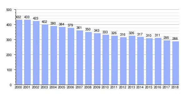 | Gráfica de evolución demográfica de Corcoesto entre 2000 y 2018 |