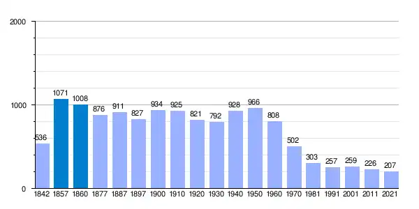 | Gráfica de evolución demográfica de Corcos[4] entre 1842 y 2021 |