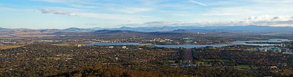 Los campos de esquí más al norte de Australia se encuentran en Brindabella e incluyen el parque nacional Namadgi en el TCA y la Reserva Natural Bimberi y el parque nacional Brindabella en Nueva Gales del Sur. La montaña más alta del TCA es Bimberi Peak, que se encuentra por encima de la línea de árboles a 1912 metros (2091,0 yd), en el extremo norte de las Montañas Snowy.[8]