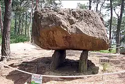 - el primero es, como los dólmenes neolíticos europeos, formado por dos o tres piedras verticales, sobre las que se colocaba una gran losa; siglo V a. C.