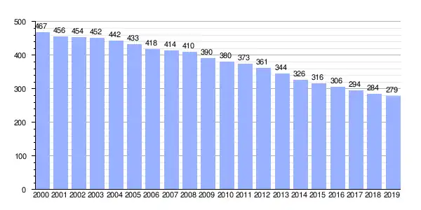 | Gráfica de evolución demográfica de Corme-Aldea entre 2000 y 2019 |