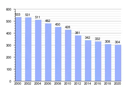 Población de derecho (2000-2020) según los censos de población del INE a 1 de enero de cada año.[9] |