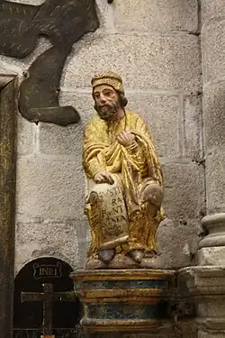 - 3 figuras en la buchería de la catedral.[1] Una de estas estatuas fue utilizada para la reconstrucción del coro situado en el museo.