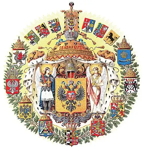 La Corona Imperial aparecía en el escudo grande del Imperio ruso (Большой государственный герб Российской Империи), en el escudo de Estado mediano (Средний государственный герб Российской Империи), y en el escudo de Estado pequeño (Малый государственный герб Российской Империи).