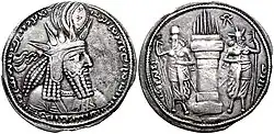 Sin embargo, no fue hasta el siglo III cuando se hizo común, y a veces habitual, en las monedas, principalmente durante el periodo de anarquía militar, quizá por su significado militar, simbólico y más tarde religioso (atribuida al Sol). En la acuñación de la época la encontramos en los antoninianos, tras la reforma de Diocleciano del 305 sólo en doble follis.
