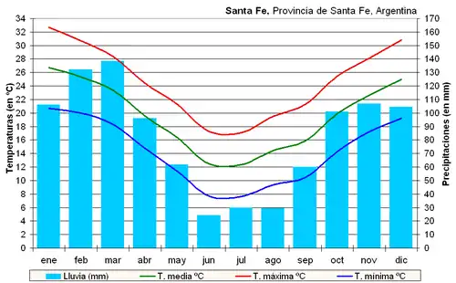 Dado a la escasa distancia y al relieve, el clima y las condiciones meteorológicas son análogos a los de la ciudad de Santa Fe.