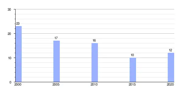 | Gráfica de evolución demográfica de Corota entre 2000 y 2020 |