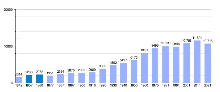 | Gráfica de evolución demográfica de Los Corrales de Buelna[5] entre 1842 y 2021 |