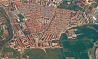 ![]() Vista aérea del barrio de la Txantrea, conectado al corredor | ||