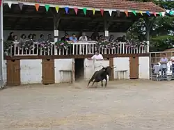 Cabe señalar, además, que en esta época se produjo otra suerte en la corrida, la colocación de lanzas en el cuello de los animales de la plaza que luego son tanto bueyes como vacas o incluso toros. Además, cabe señalar que a lo largo del siglo XIX, este juego gascón se llamaba "corrida de toros". Luego, el 17 y 18 de octubre de 1852,[9] en Magescq, fue la aparición de ganado de origen ibérico, que resultó ser más adecuado que el ganado local para el buen desarrollo de la corrida.